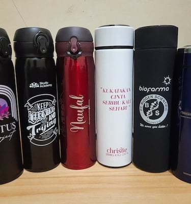 Fleksibilitas Penggunaan : Tumbler custom kami cocok digunakan untuk berbagai jenis acara, mulai dari seminar, konferensi, hingga event perusahaan, atau sebagai produk iklan untuk meningkatkan brand awareness.