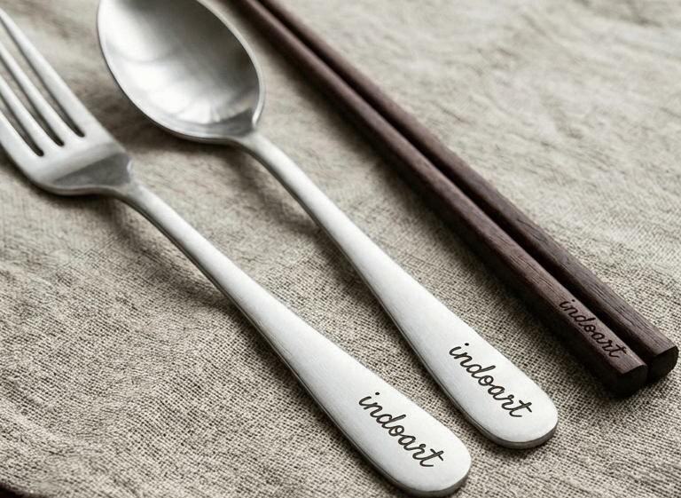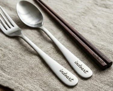 "Berikan sentuhan eksklusif pada setiap hidangan Anda. Kami hadir dengan layanan grafir logo custom pada sendok, garpu, dan sumpit untuk memperkuat identitas brand restoran Anda. Detail elegan yang membuat pelanggan selalu ingat dengan brand Anda."