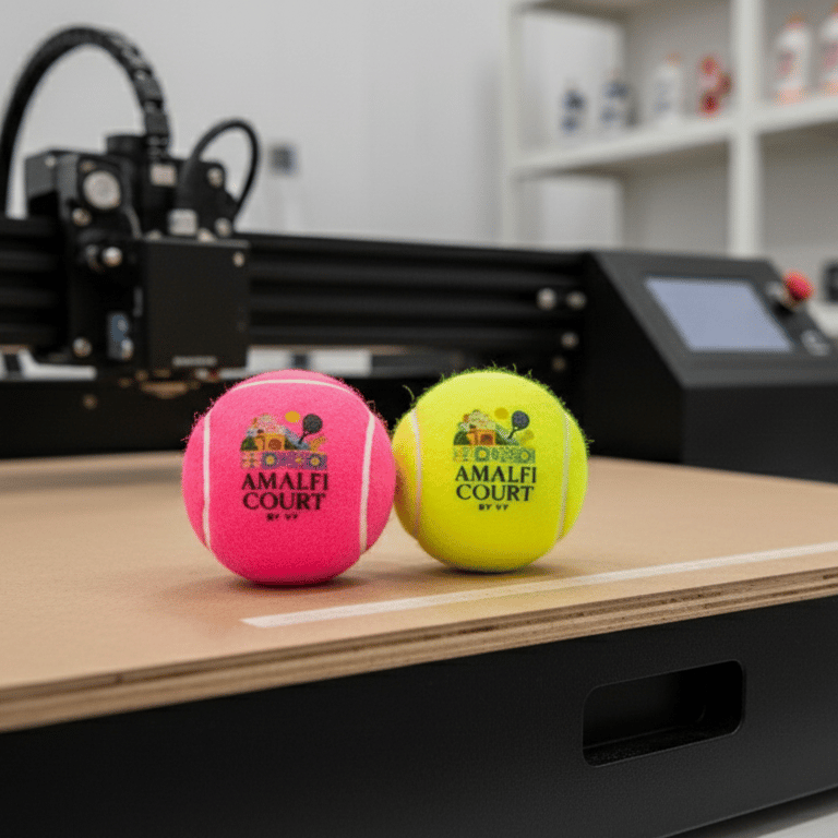 "Jadikan setiap pukulan unik milik Anda! Kami menyediakan jasa custom print logo untuk bola padel dan tenis. Desain impian Anda, di tangan Anda."